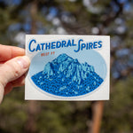 This impressive rock formation in Pine, Colorado rises above the North Fork of the South Platte and is popular with climbers. I first spotted its rock spires during a mountain bike ride on the Nice Kitty trail in nearby Buffalo Creek. The night after that ride, I pored over Google Maps, cross-checking my photos, to identify it. Enjoy this view every day by decorating your water bottles, laptop sleeves, or notebooks with this dishwasher-safe BOPP sticker.