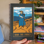 A woman in the not-so-distant past treks across mountains, carrying her child. This image reminds me that I’m not alone; that women have been facing huge obstacles to pursuing their dreams for centuries. And that my children are watching me. This notebook with a soft-touch cover and dotted pages is adorned with the message to "Honor Your Journey," a subtle call to turn your regrets into strengths.