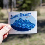 This peak in Pike National Forest overlooks the South Platte River. Its long craggy ridge makes it easy to see how it got its name. It lies just south of the Colorado Trail, which passes Long Scraggy to head into Buffalo Creek Recreation Area. Enjoy this view every day by decorating your water bottles, laptop sleeves, or notebooks with this dishwasher-safe BOPP sticker.